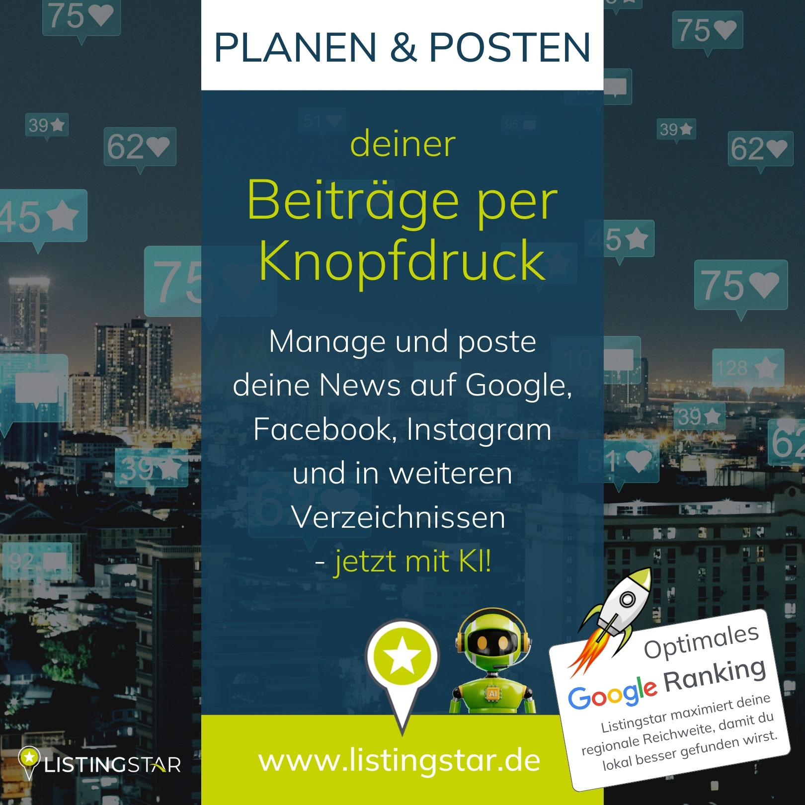 Plane und veröffentliche deine News, Angebote und Events nicht länger isoliert nur in Google My Business oder einzelnen Social-Media-Kanälen.