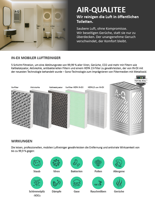 Schlechte Luft wird selten technisch beschrieben. Sie wird erlebt. Gerüche, VOCs, Feinstaub, Viren, Bakterien und andere luftgetragene Belastungen beeinflussen, ob ein Raum als sauber, angenehm und vertrauenswürdig wahrgenommen wird. Besonders sensibel sind Bereiche mit hoher Frequenz: Stores. ✔️ Sanitäranlagen. ✔️Tankstellenshops. ✔️Restaurants. ✔️Bürogebäude. ✔️Kliniken. ✔️Pflegebereiche. ✔️Agrarbetriebe. ✔️ Einkaufszentren ✔️ Messe- und Veranstaltungshallen