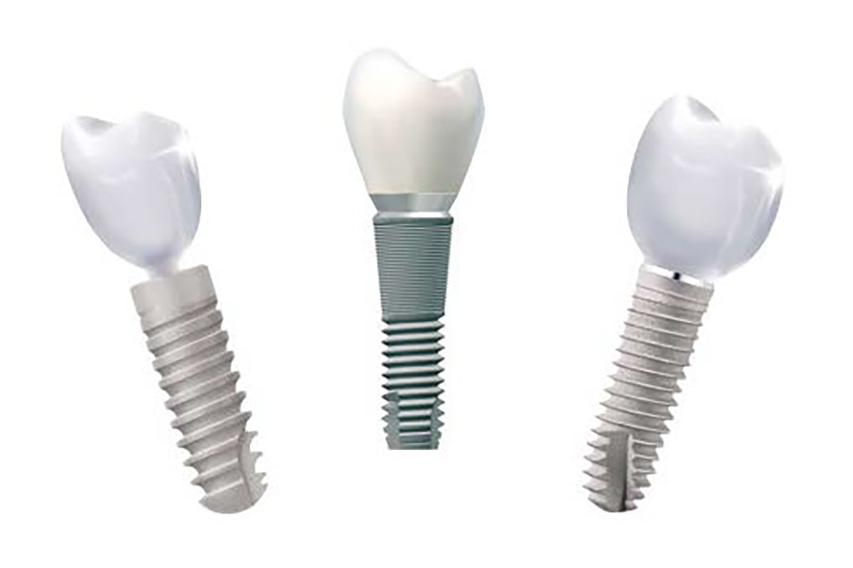 Zahnimplantate sind kleine Titanschrauben, die in den Kieferknochen eingesetzt werden und dort die Basis für den Zahnersatz bilden.